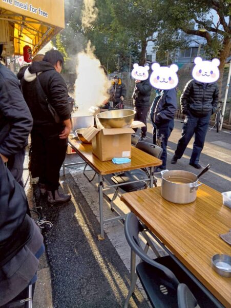 みんなで支え合う炊き出しの場には、「ありがとう」や「小さな笑顔」が生まれます。