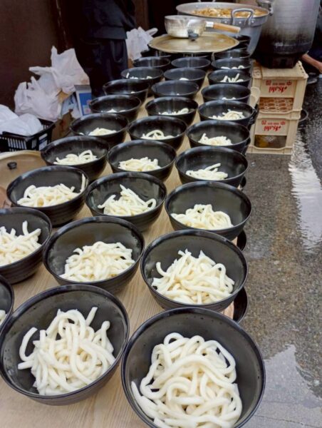 出来たてのうどんを一杯ずつ丁寧にお渡ししています🍜